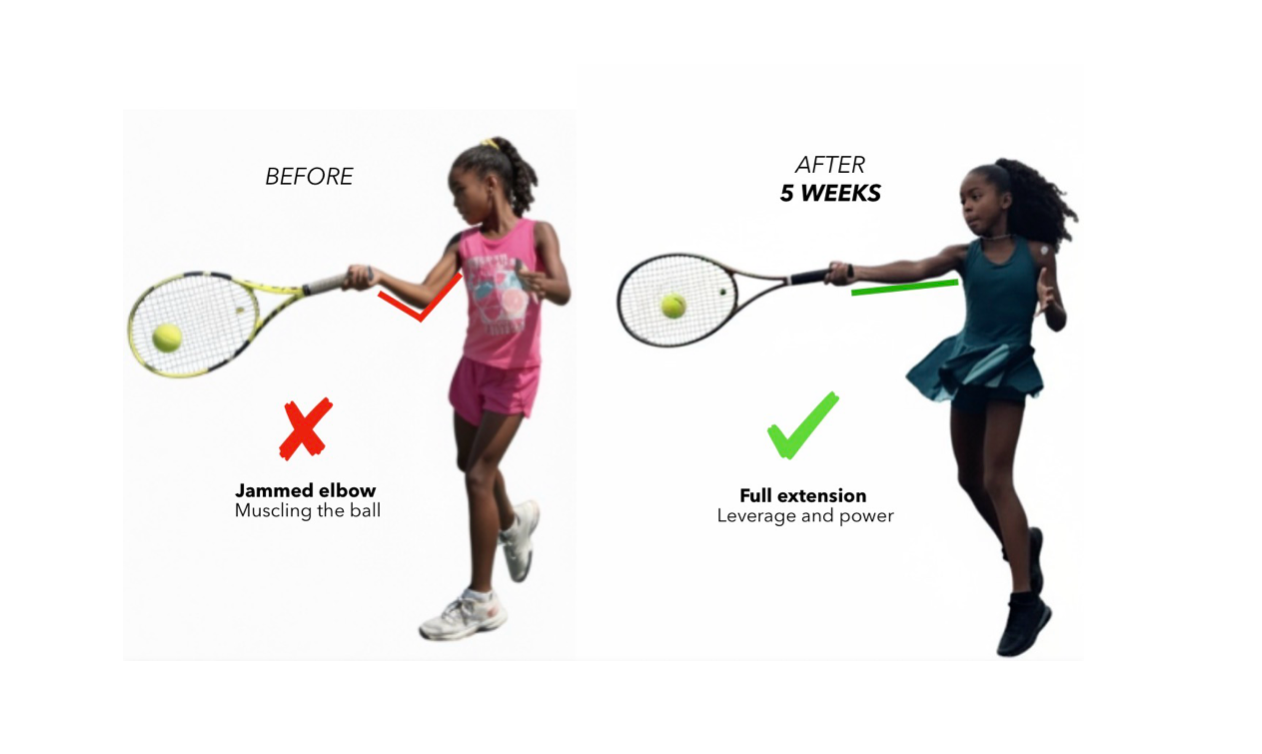 When hitting a forehand, it improves preparation, spacing and swing consistency in a way players can feel.